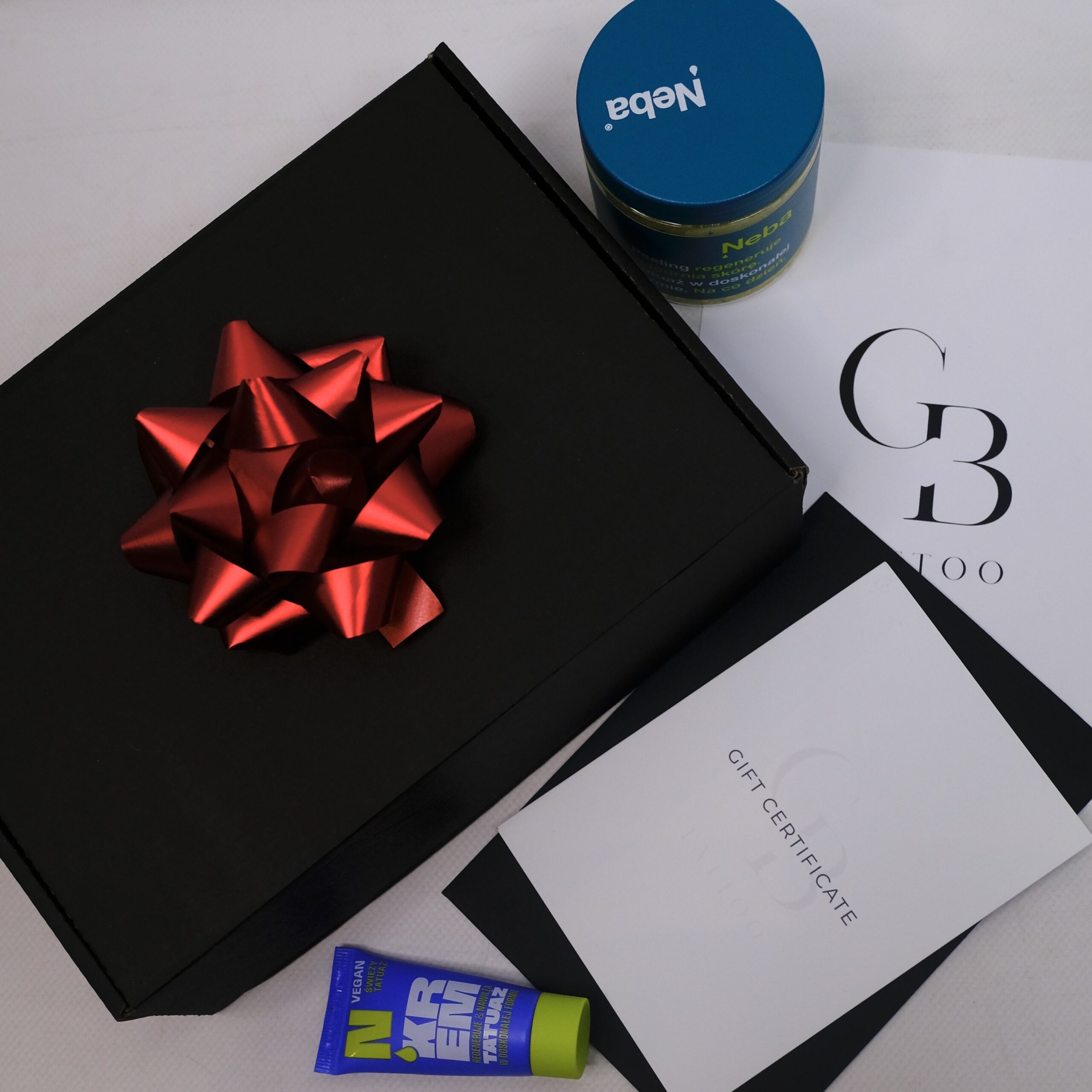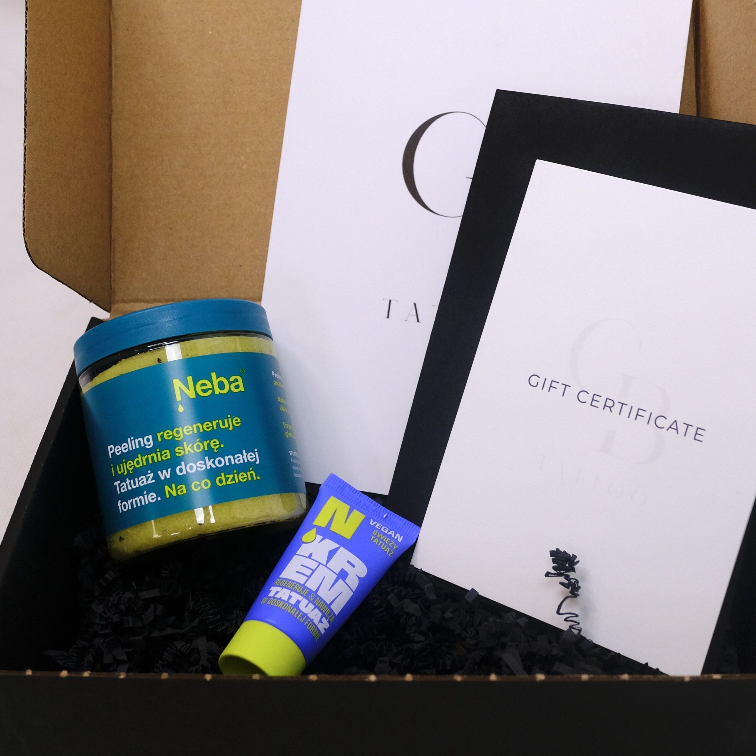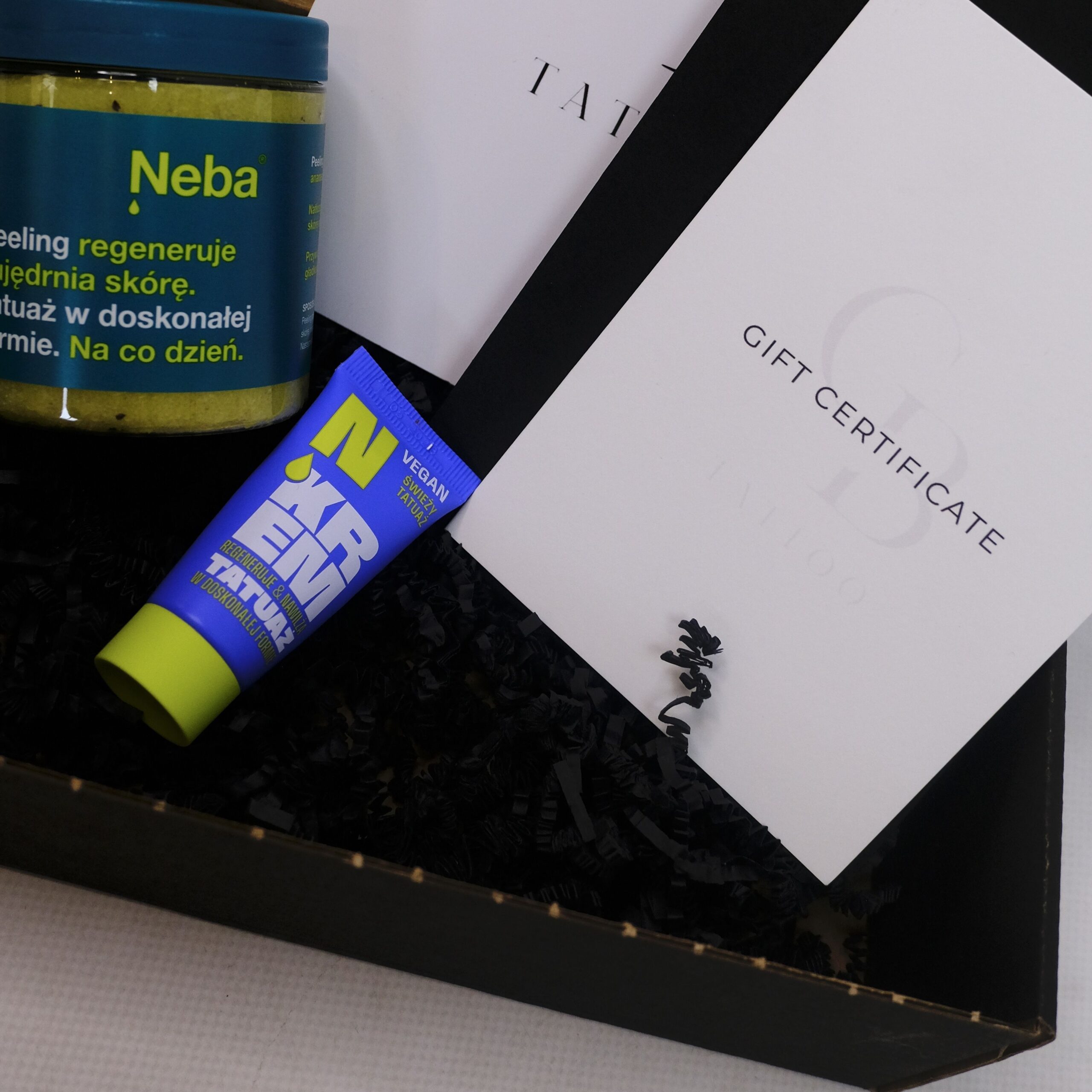 Do zestawu polecamy dokupić voucher prezentowy na tatuaż, który w połączeniu z pakietem pielęgnacyjnym tworzy wyjątkowy, kompletny prezent